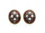 Victorian style oval ruby, diamond and red enamel stud earrings