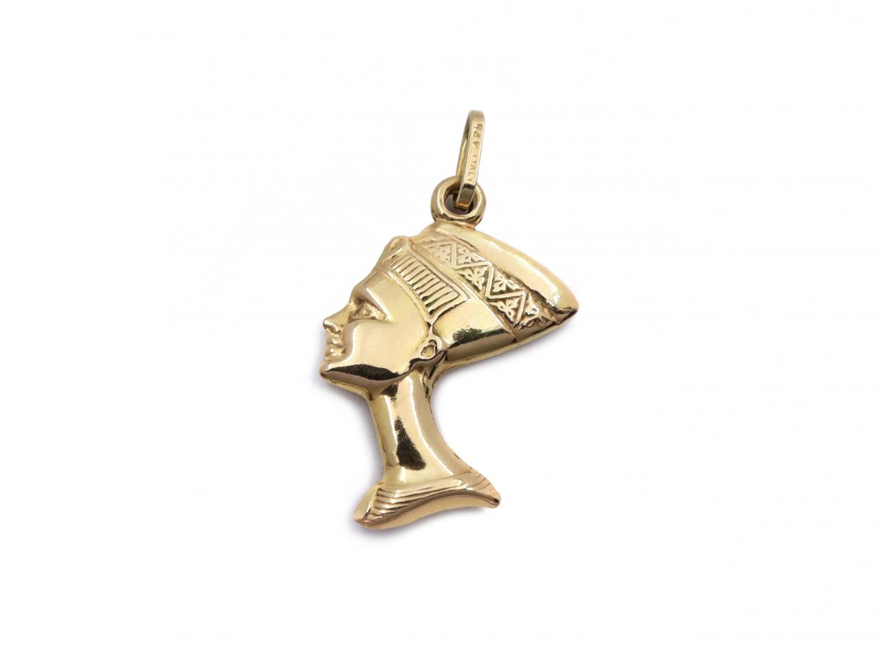 Vintage 14kt yellow gold Queen Nefertiti pendant. The profile of the famous bust of Queen Nefertiti including her chased headpiece and fitted to the top with an oval bale. Marked 14kt gold, Italian.