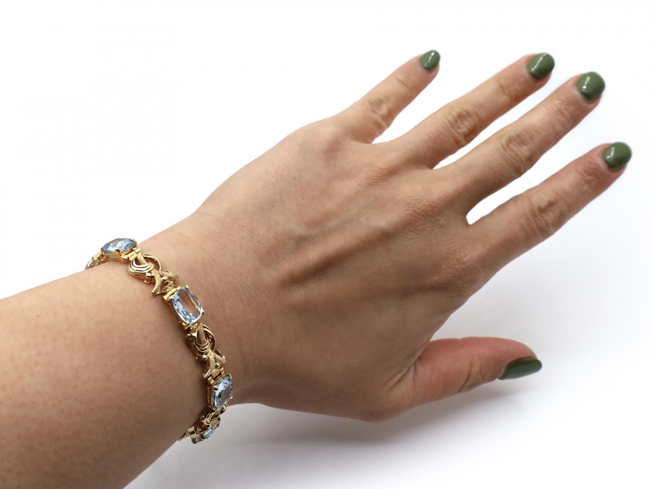 Vintage 18kt yellow gold and aquamarine bracelet. Estimated total aquamarine weight 15.00cts.