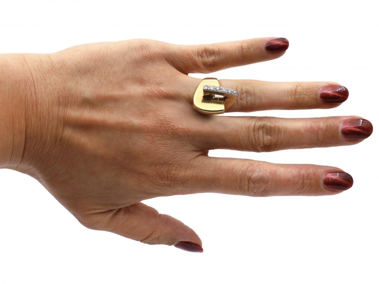Vintage 18kt yellow gold and diamond three dimensional link ring