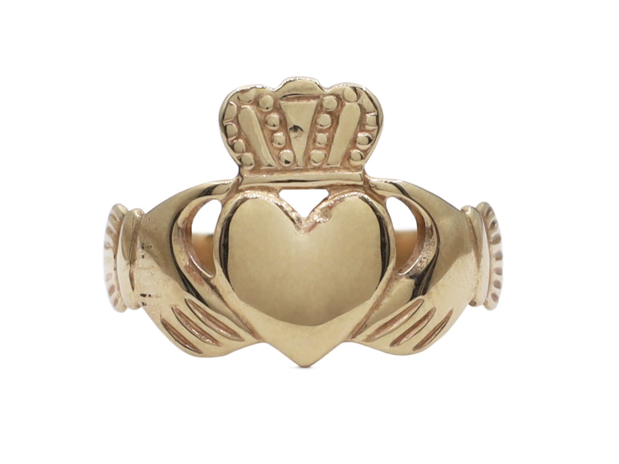 Vintage 1990s Claddagh ring in 9kt yellow gold.