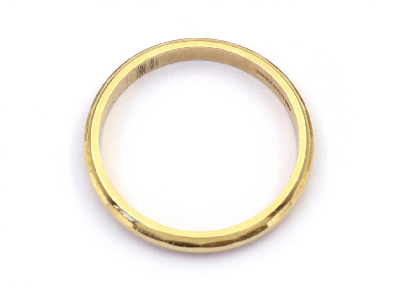 Vintage 2.5mm faceted edge wedding ring in 18kt yellow gold. Hallmarked 18kt gold, Dublin. Size: J.