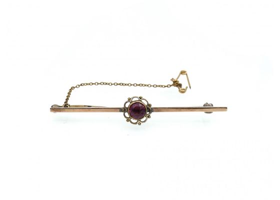 Vintage 9kt yellow gold Claddagh bar brooch fitted to the reverse with a hinged pin and secure safety latch.