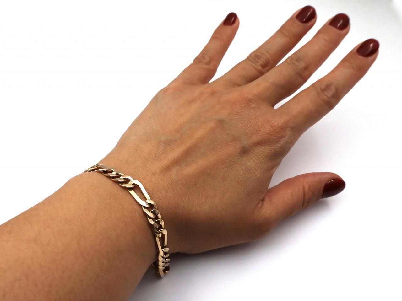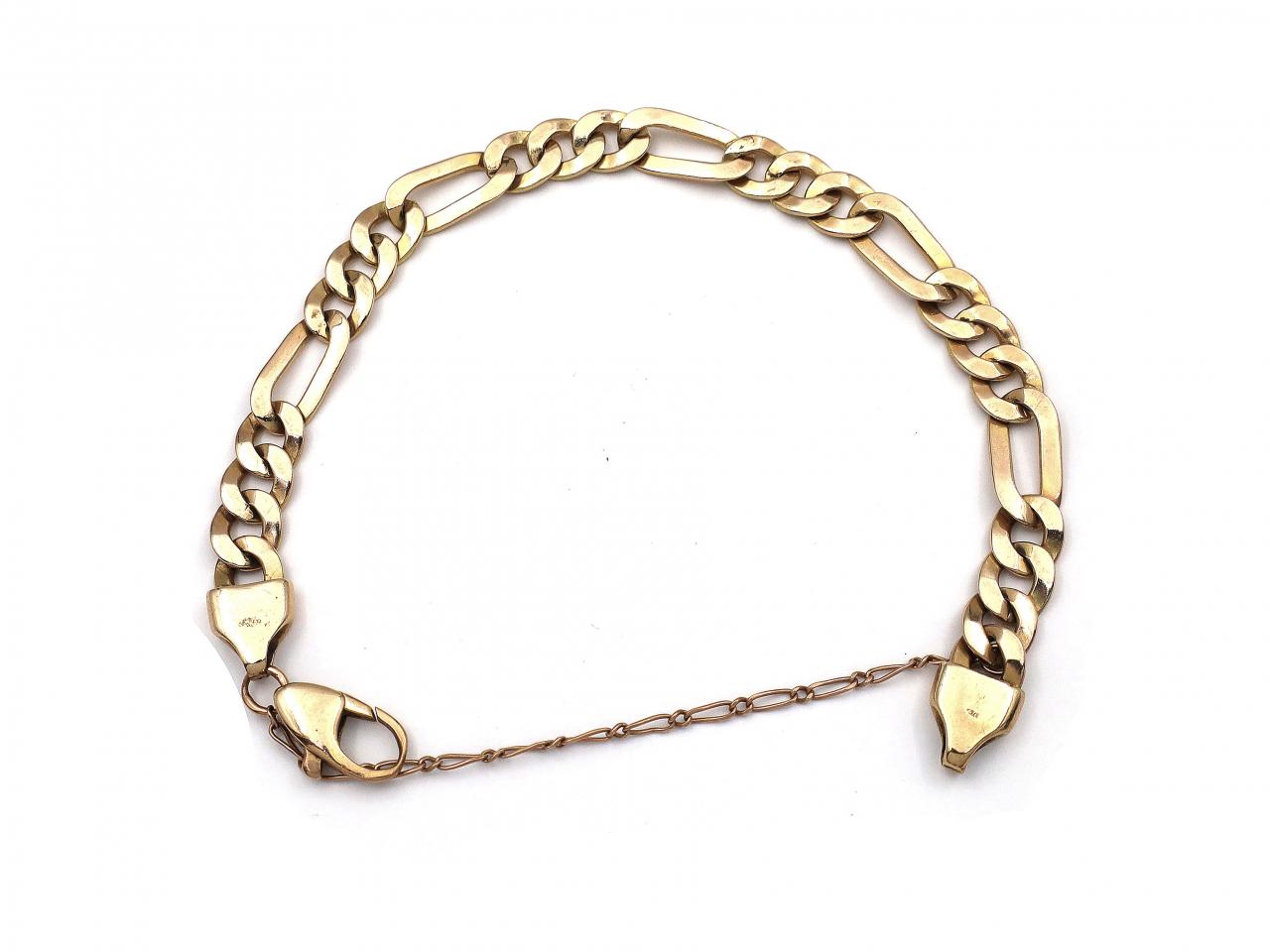 Vintage 9kt yellow gold Figaro link bracelet with safety chain. Marked 9kt gold.