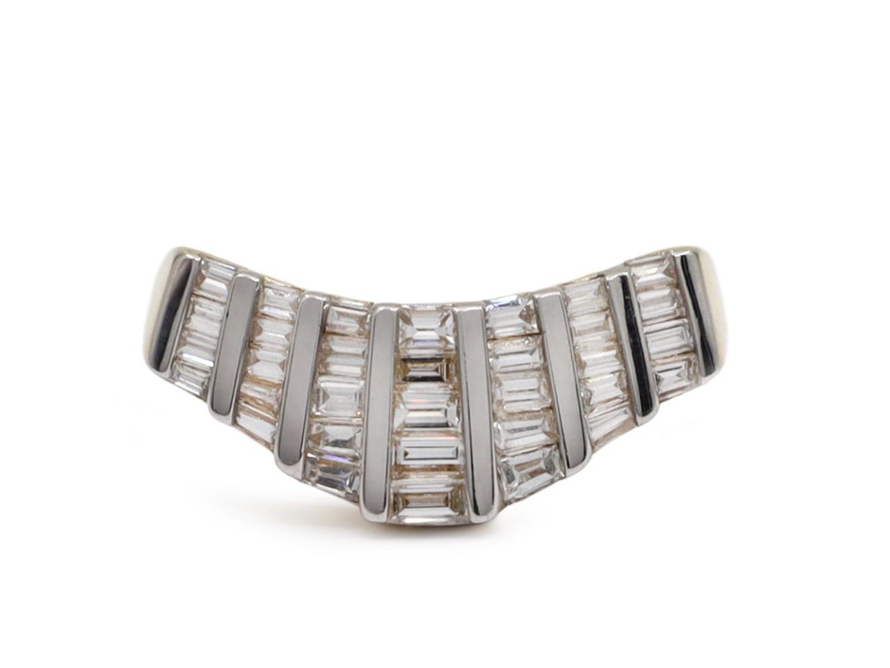 Vintage baguette diamond set wishbone cluster ring in 18kt white and yellow gold.