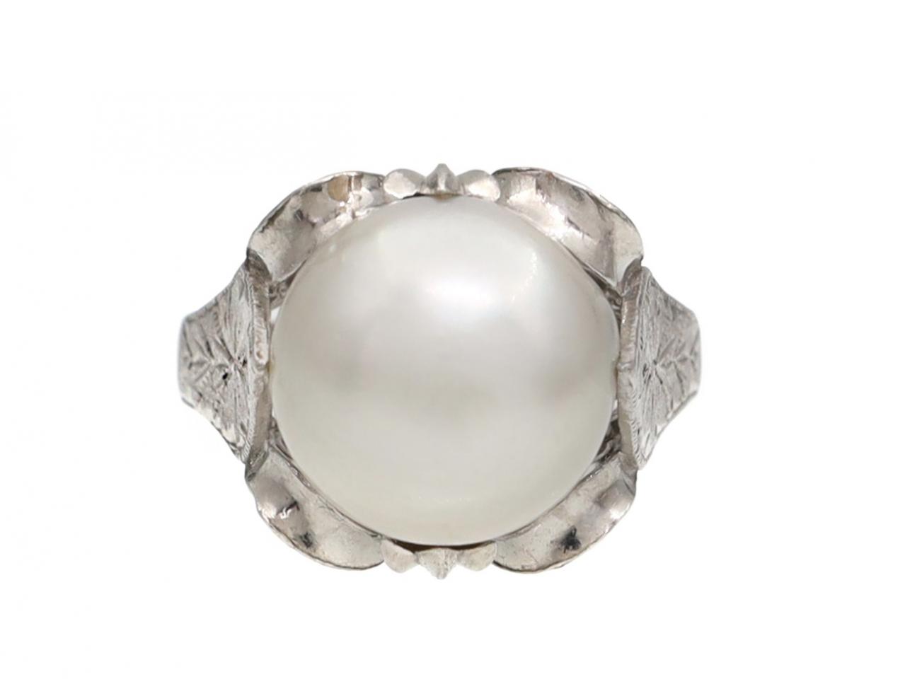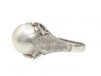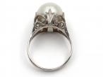 Vintage cultured pearl solitaire platinum dress ring.