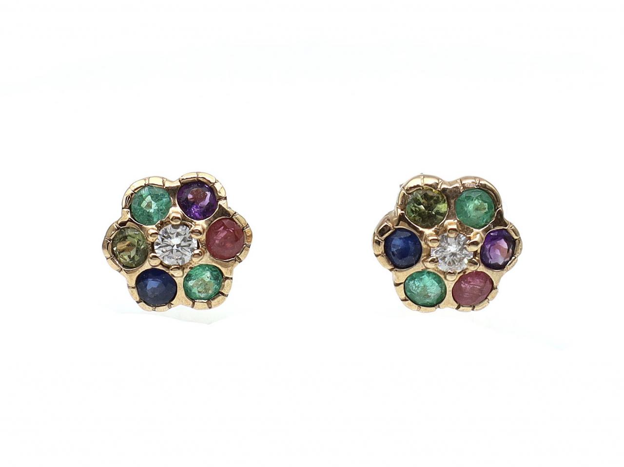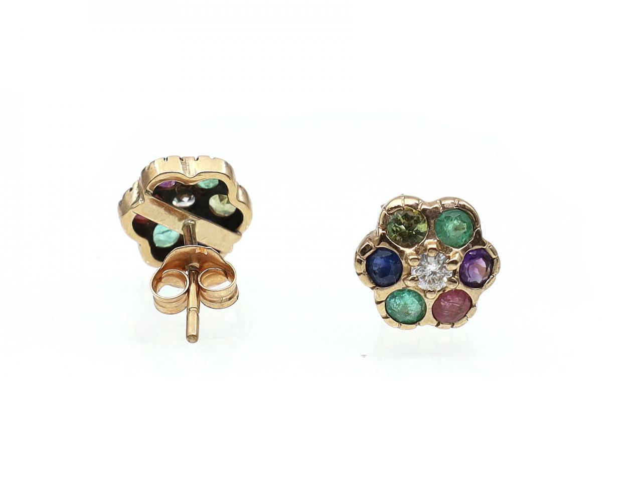 Vintage 'DEAREST' floral stud earrings in 9kt yellow gold.
