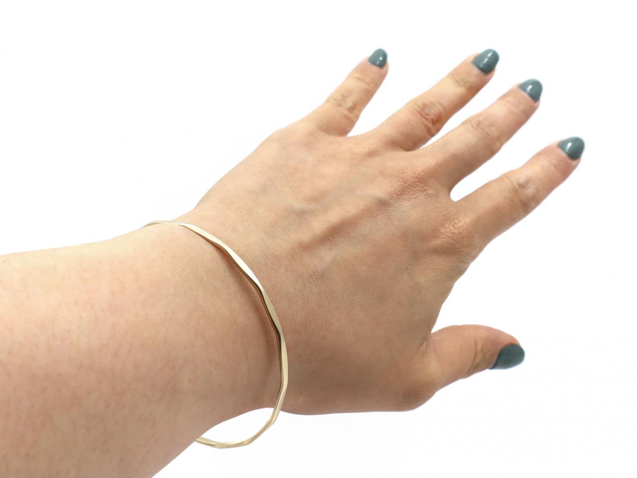 Vintage faceted 9kt yellow gold bangle. A solid bangle featuring angular faceting to the outter and soft scallop edges. Hallmarked 9kt gold, Birmingham.