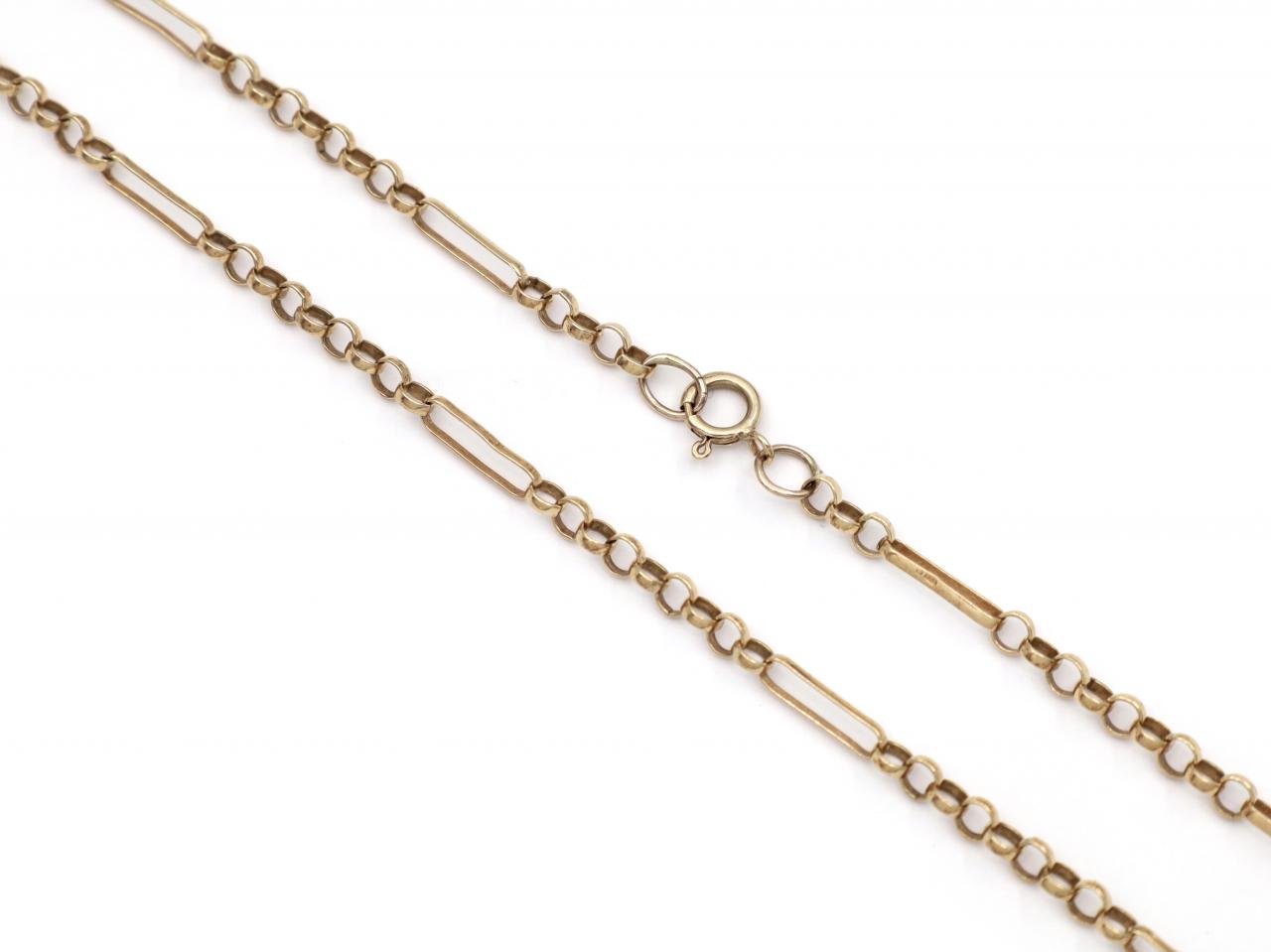 Vintage figaro belcher link necklace in 9kt yellow gold, secured to the reverse with a bolt ring. Marked 9kt gold. Estimated 39cms in length.