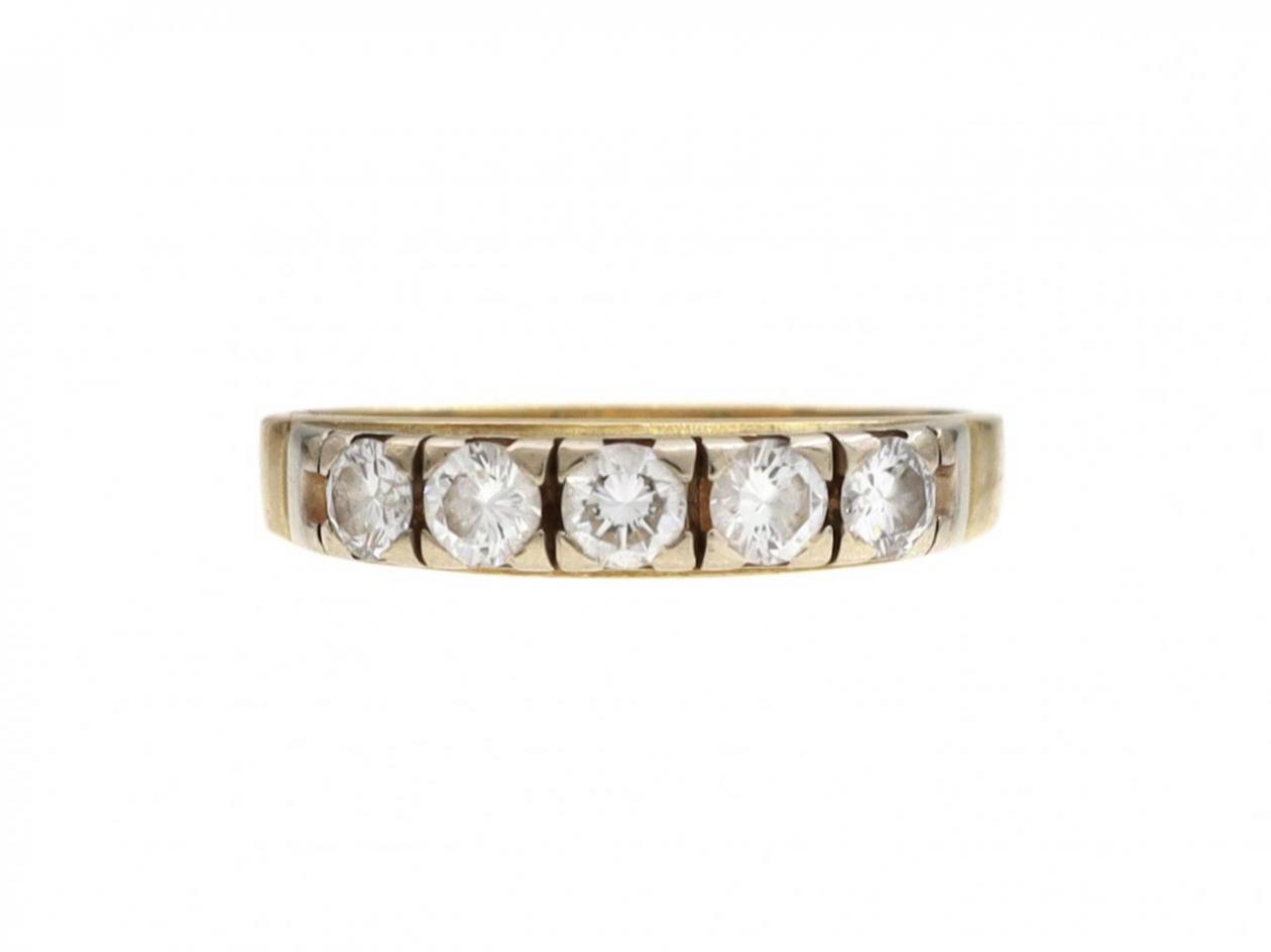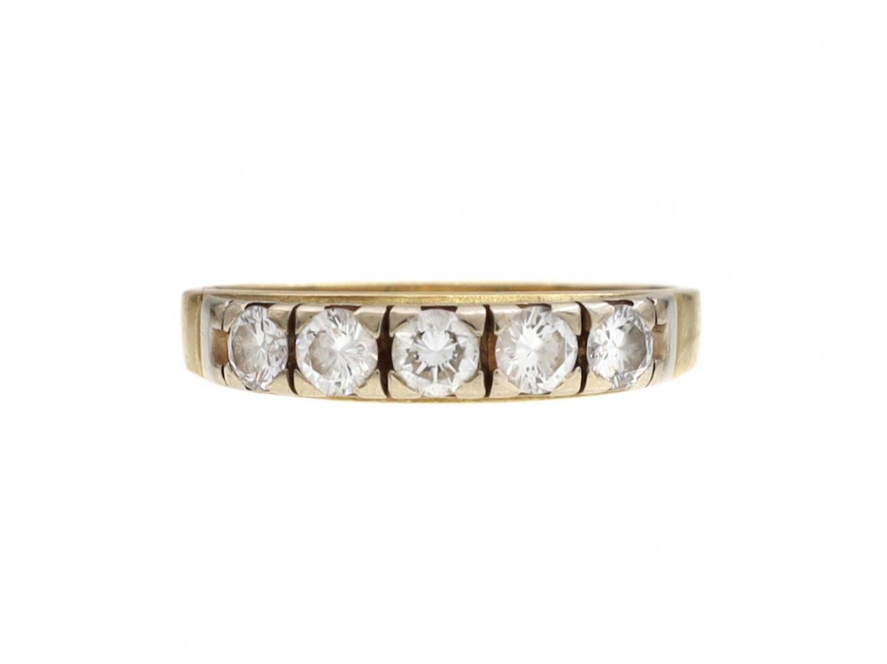 Vintage five stone diamond ring in 18kt yellow gold. Estimated total diamond weight 0.50cts.