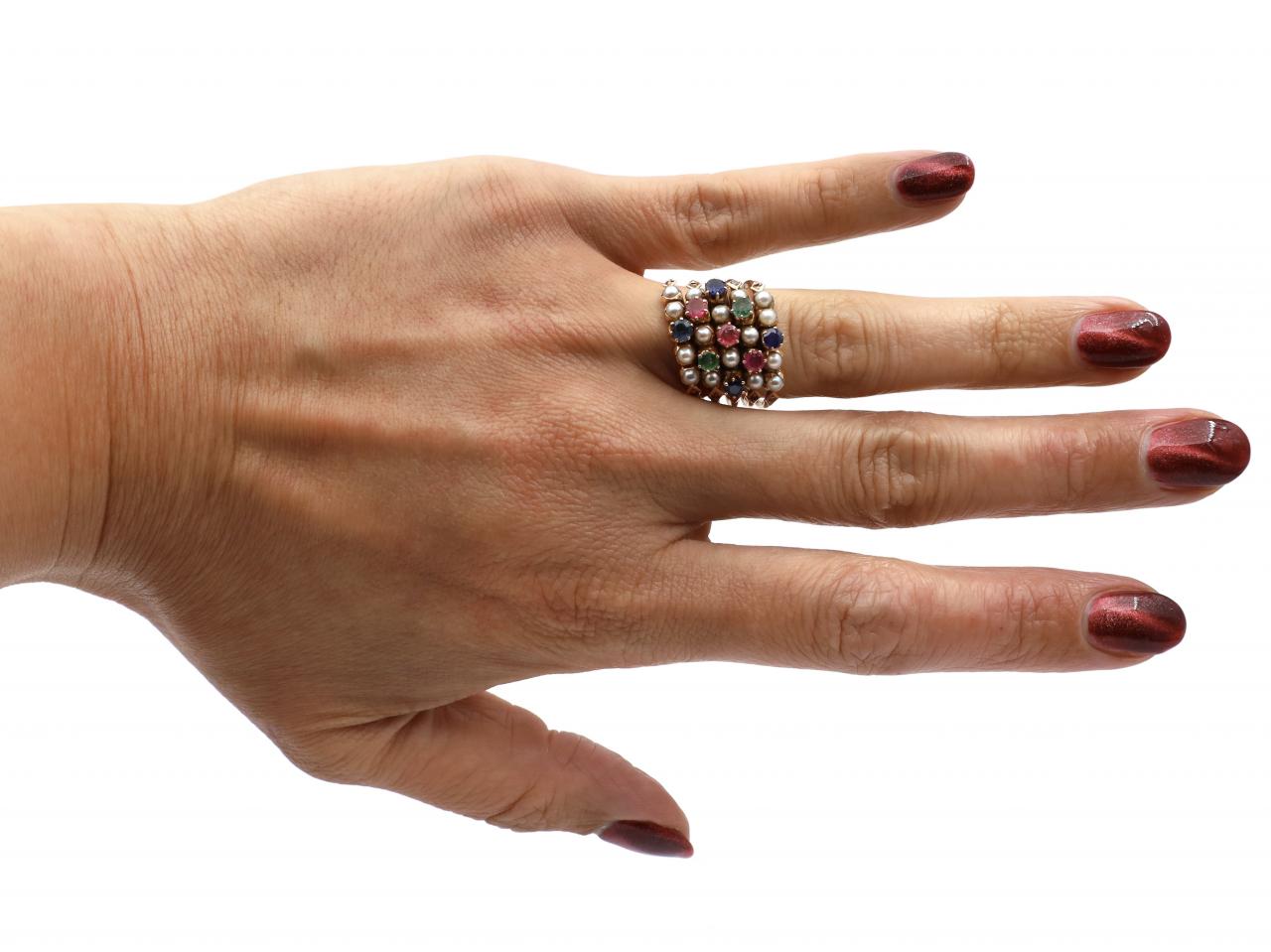 Vintage Five Strand Ring set with Pearls, Emeralds, Sapphires and Rubies Vintage Five Strand Ring set with Pearls, Emeralds, Sapphires and Rubies Vintage Five Strand Ring set with Pearls, Emeralds, Sapphires and Rubies