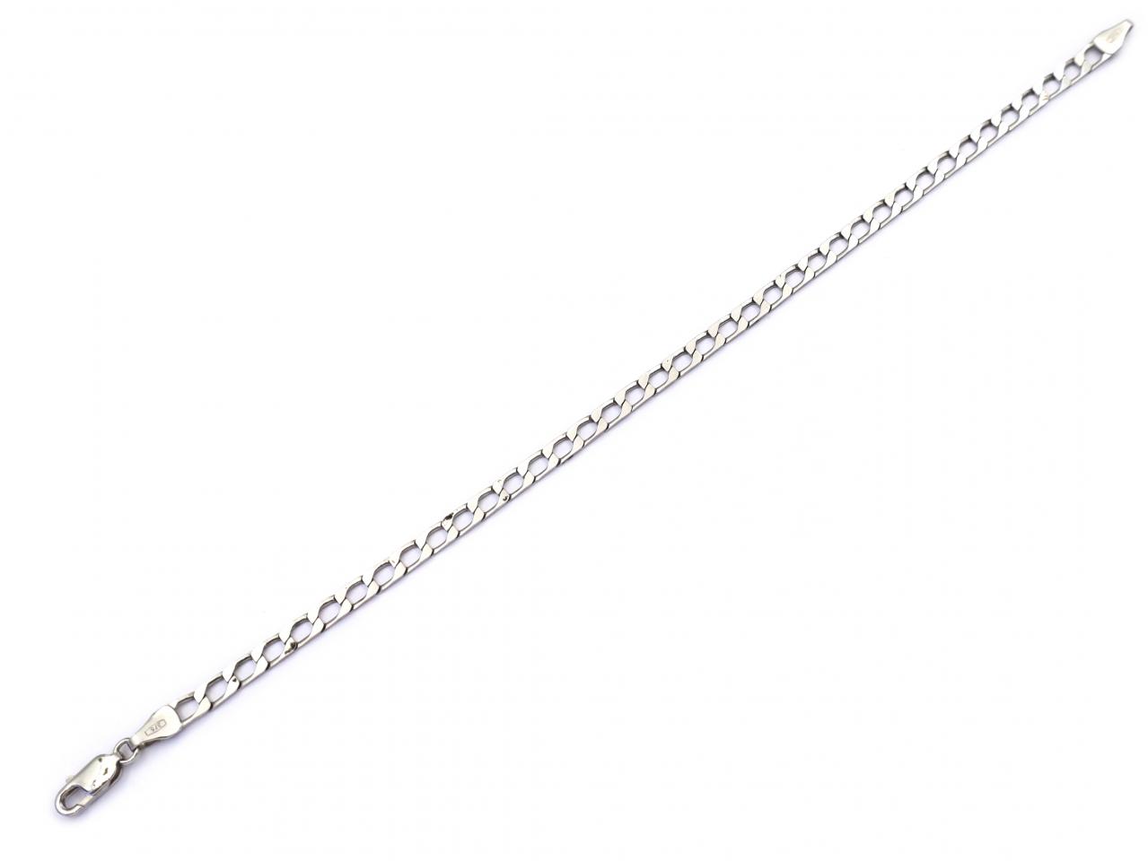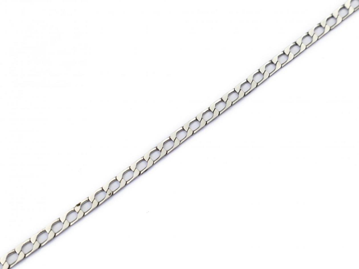 Vintage flat curb bracelet in 9kt white gold. A repeating flat filed curb link bracelet fitted with a secure parrot clasp. Marked 9kt gold.