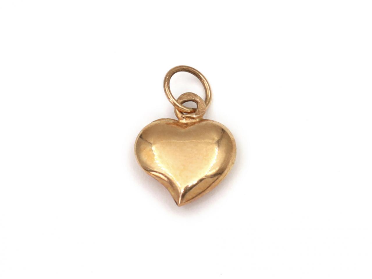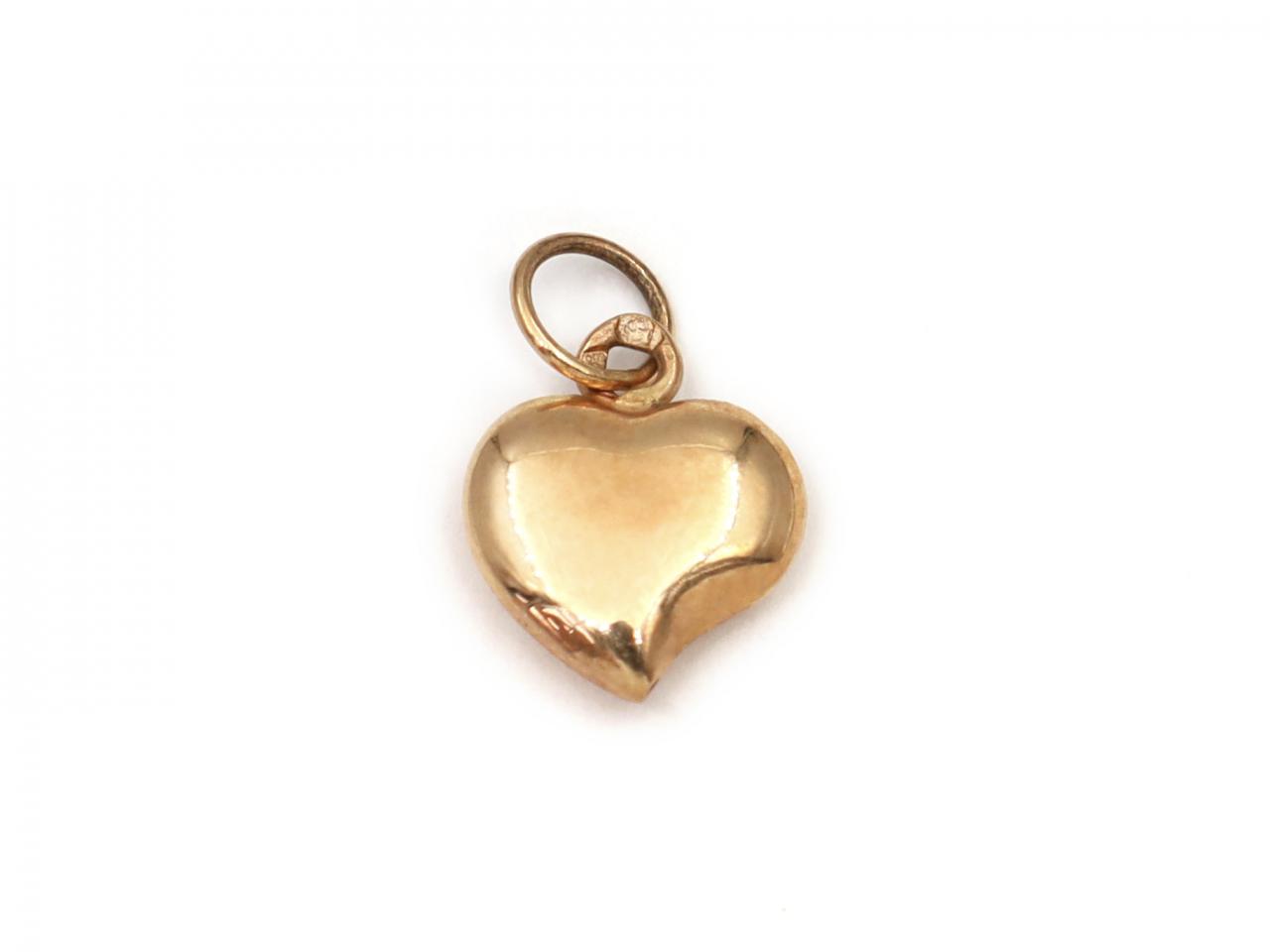 Vintage mini puffy heart pendant in 14kt rose gold. Marked 14kt gold. Approximately 1cm x 1cm.