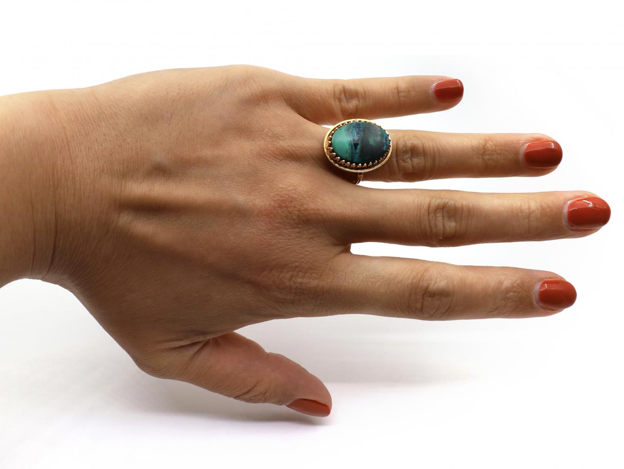 Vintage oval azurmalachite dress ring in 14kt yellow gold Vintage oval azurmalachite dress ring in 14kt yellow gold Vintage oval azurmalachite dress ring in 14kt yellow gold Vintage oval azurmalachite dress ring in 14kt yellow gold