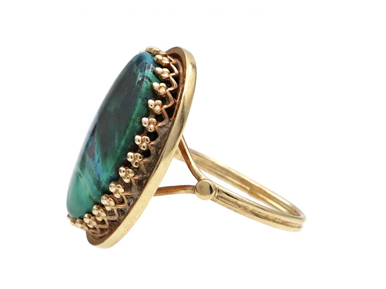 Vintage oval azurmalachite dress ring in 14kt yellow gold