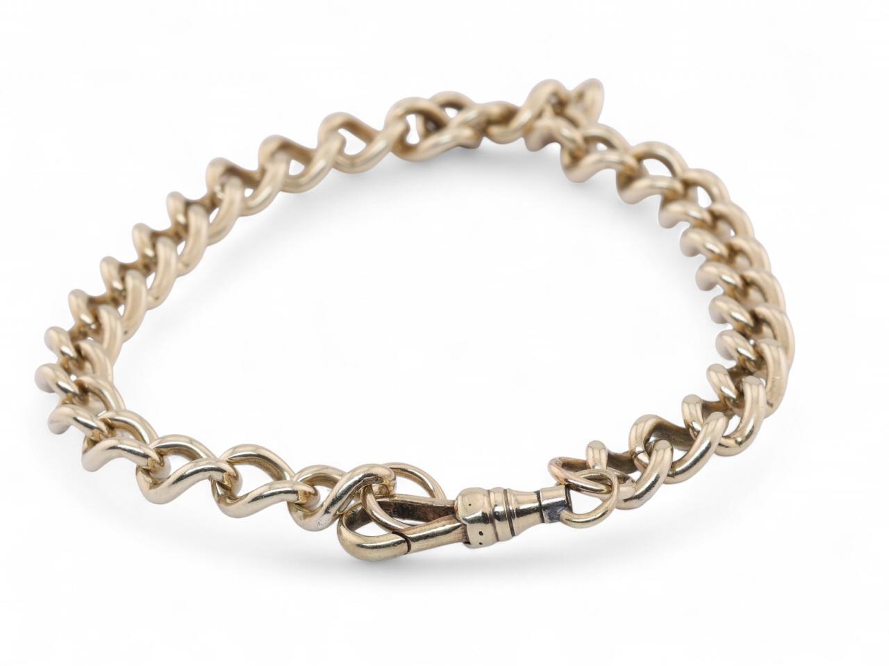 Vintage oval curb chain bracelet in solid 9kt yellow gold. An open curb link bracelet with polished links and terminating to a swivel clasp. Marked 9kt gold. Approximately 23.5cms in length. Approximately 19.8 grams in weight.