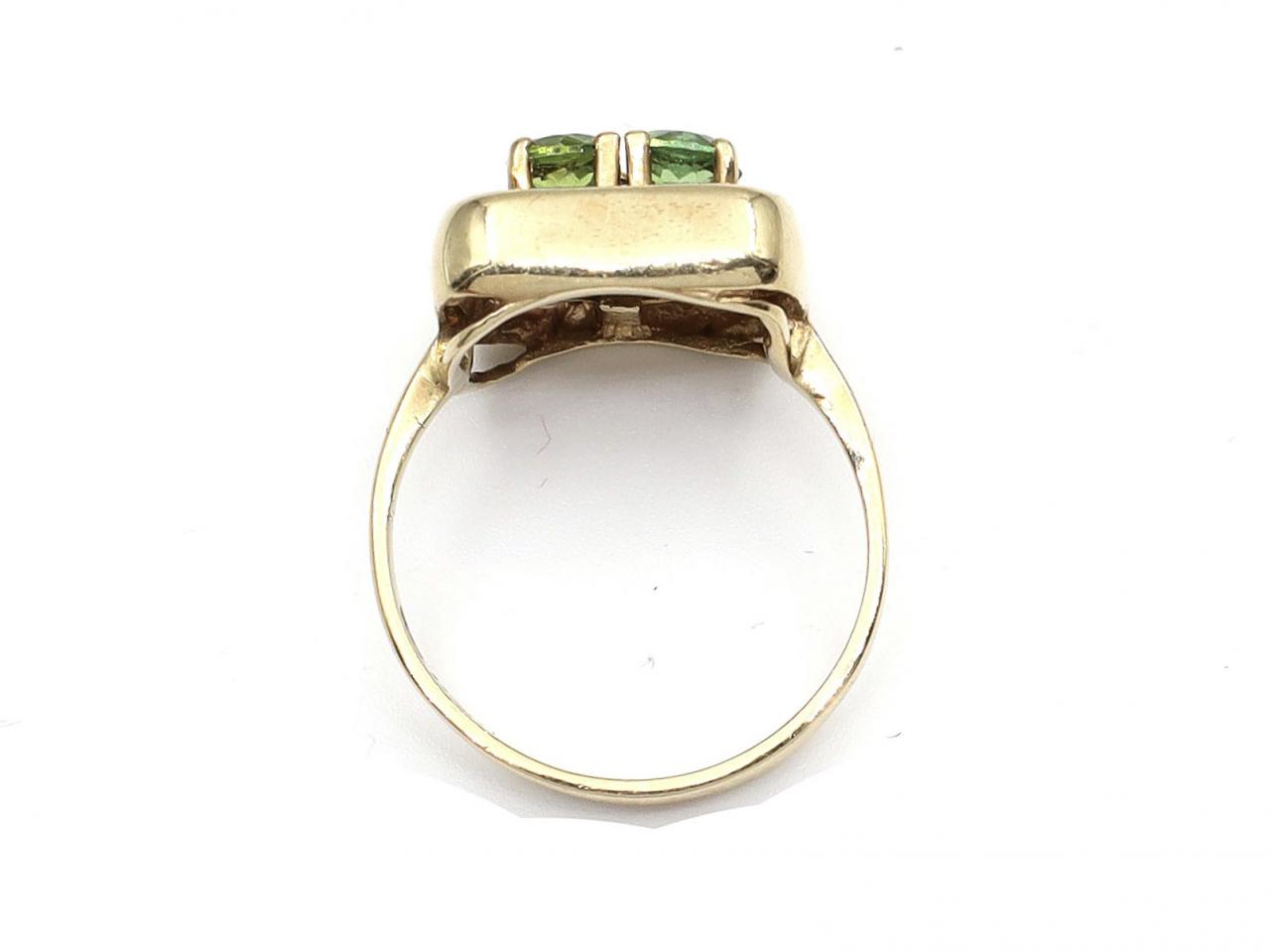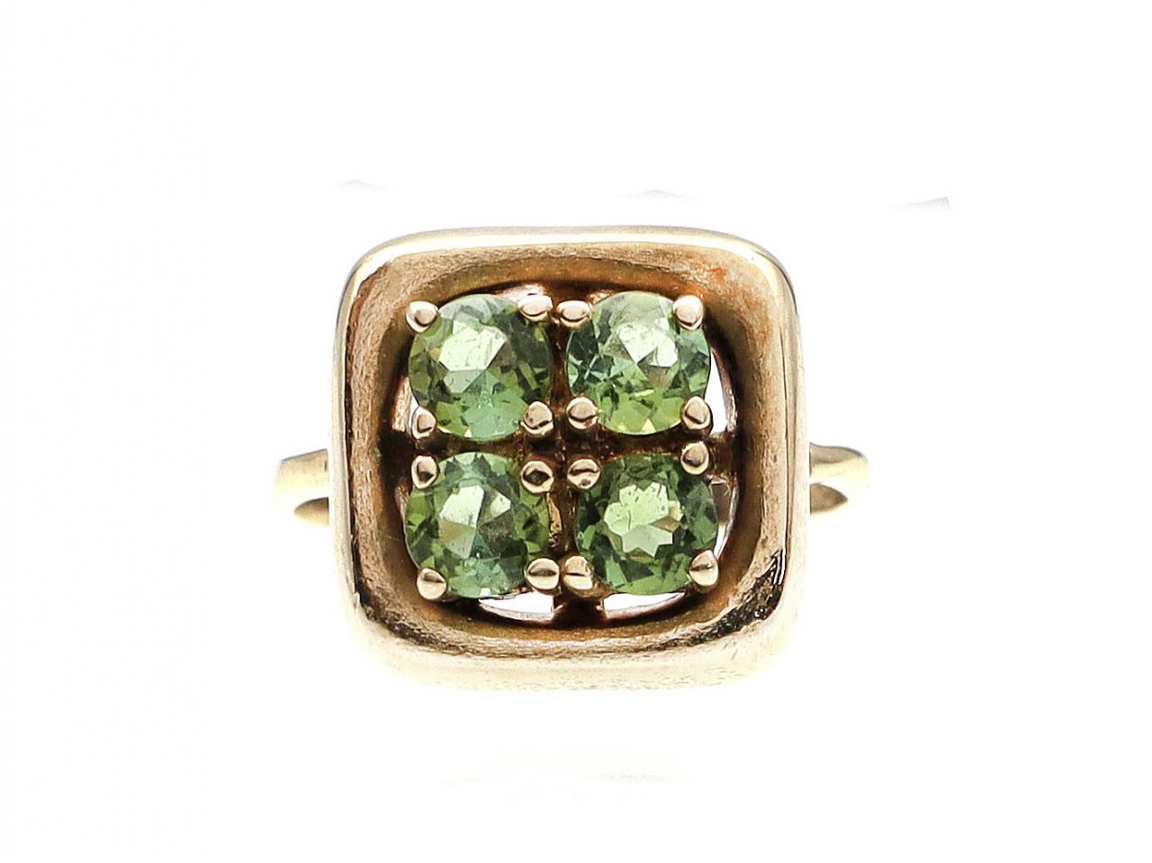 Vintage peridot square cluster ring in 9kt yellow gold