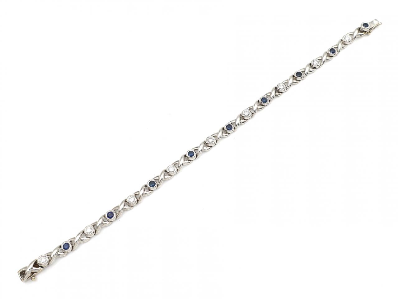 Vintage platinum, sapphire and diamond cross link bracelet Vintage platinum, sapphire and diamond cross link bracelet Vintage platinum, sapphire and diamond cross link bracelet